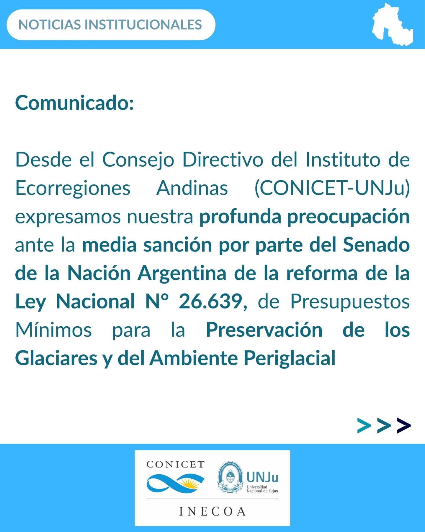 El Consejo Directivo del Instituto de Ecorregiones Andinas (INECOA, CONICET–UNJu) expresó su rechazo a la modificación de la Ley de Glaciares, destacando la importancia de resguardar estos ecosistemas estratégicos para el ambiente y la sociedad.